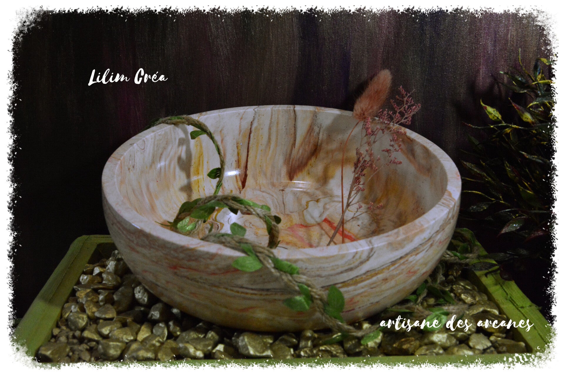 magnifique récipient non alimentaire en Jesmonite. Sa grande taille vous permettra d'y déposer vos précieux sans probléme.